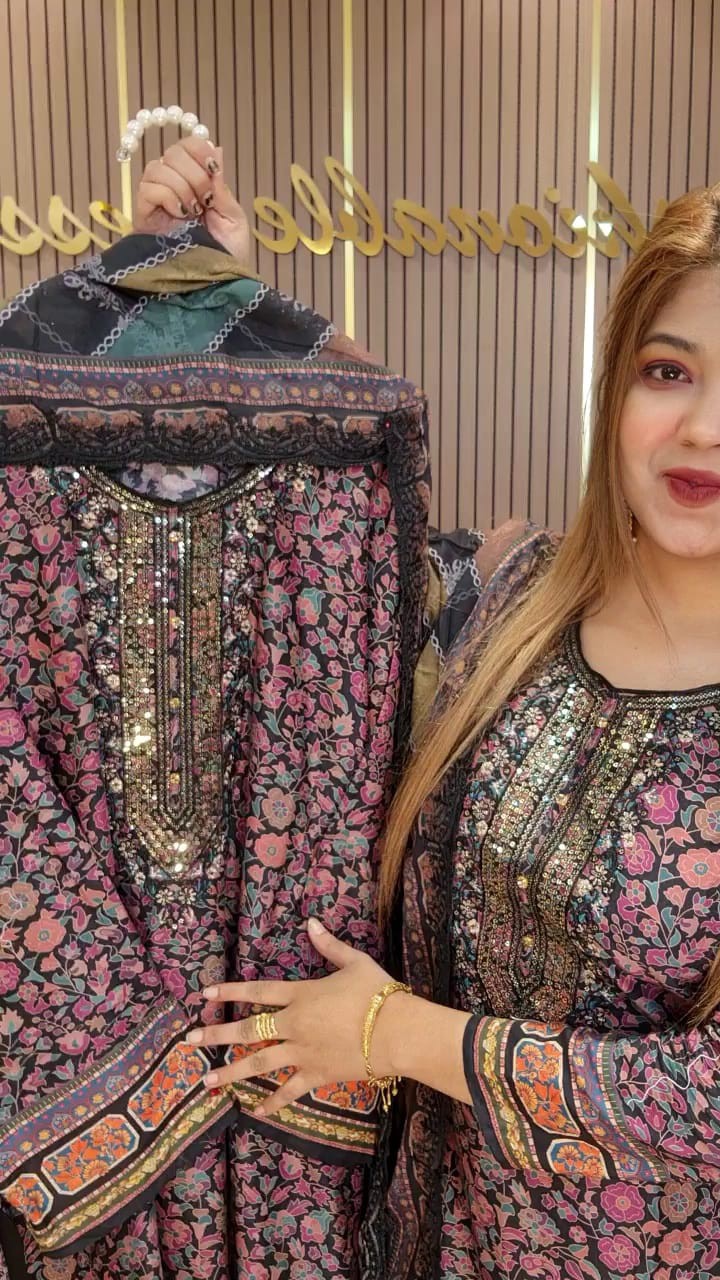 💥Orna lawn cotton digital pri t with embroidery work