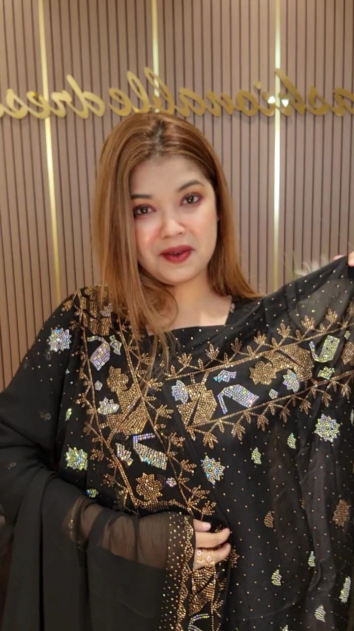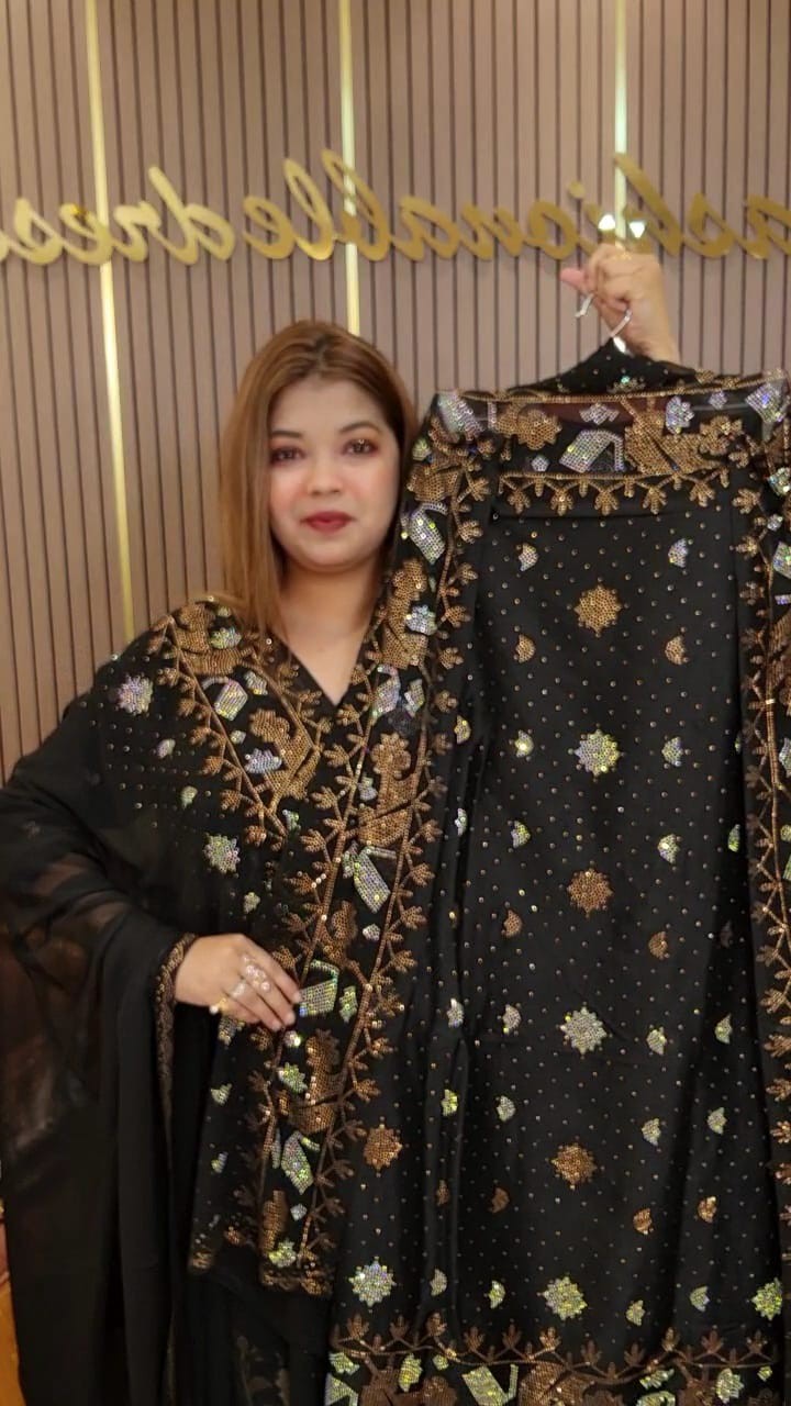 💥Orna pakistani chiffon gorget imoorted one with heavy sarvoski work