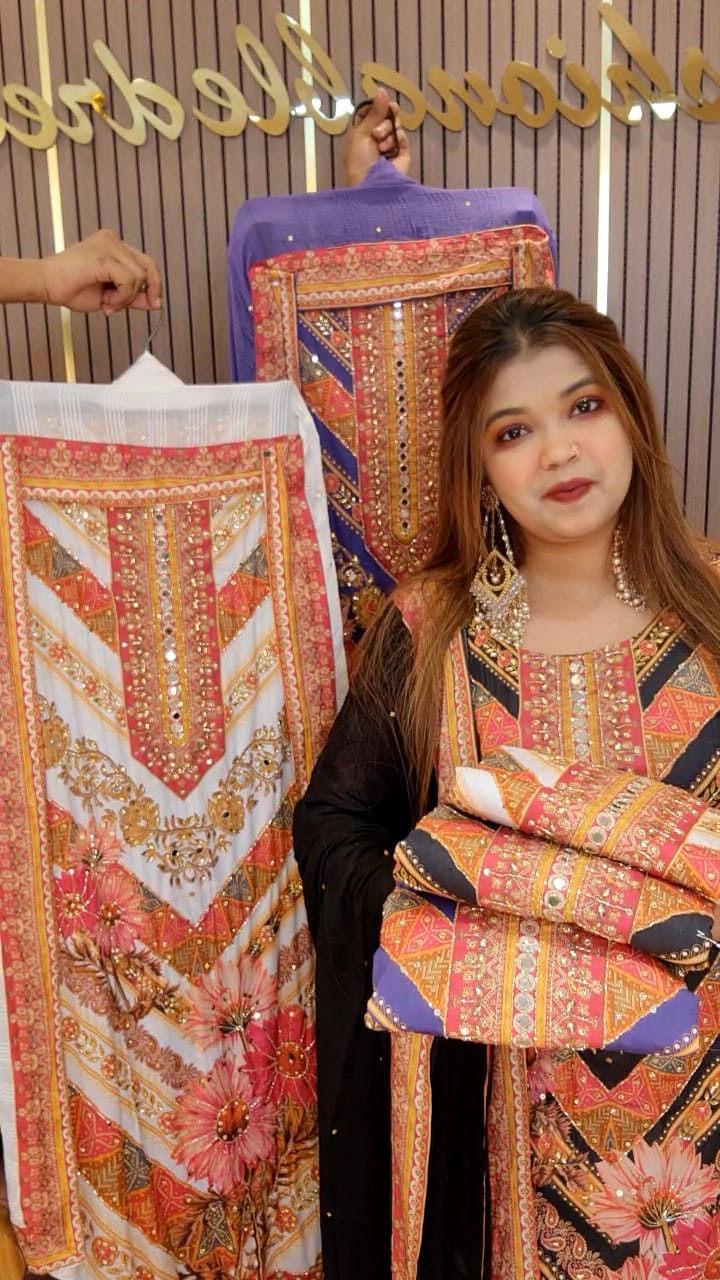 💥orna rayon gorget cotton with embroidery work and pannel work