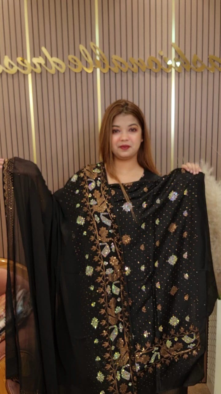 💥Orna pakistani chiffon gorget imoorted one with heavy sarvoski work