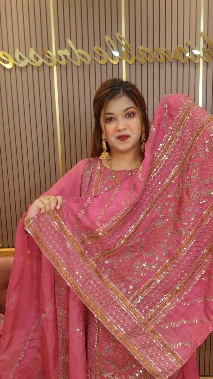 💥Orna soft glossy organza with all over embroidery sequence